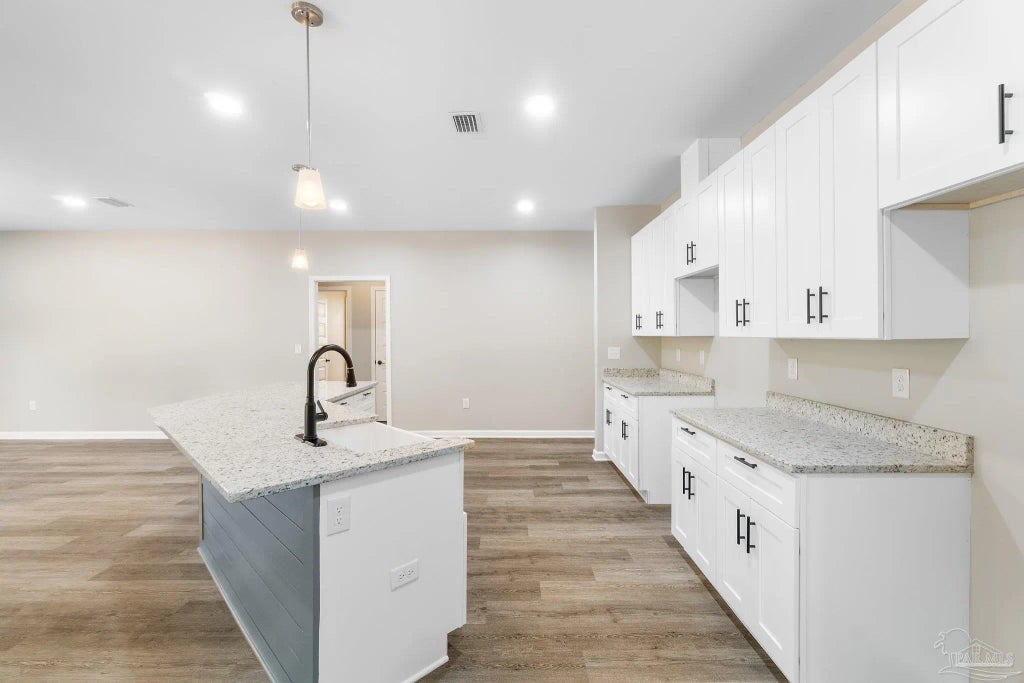 This Gorgeous newly renovated 4-bedroom 3-bathroom home in Cantonment has beautiful features throughout! From the stunning granite countertops, luxury vinyl flooring and oil rubbed lighting and bathroom fixtures. The imagination is alive in this modern remodel with a great flowing floor plan, and easy accesses to the back patio. This home sits on over 7 acres and offers a fabulous open floorplan for everyday living and entertaining. When you walk into the home you are greeted with a large foyer that opens into the great room. The spacious great room leads into your kitchen with a large island, granite countertops, Whirlpool stainless steel appliances with a 3 year transferable warranty and pantry with a frosted glass pantry door. Off the kitchen is your living room overlooking your beautiful back yard. This room is perfect for curling up with a cup of coffee and enjoying a movie or relaxing at the end of the day. The large master suite has beautiful trey ceilings and its own private door to the covered patio. There are His and Hers Closets in the Master bath vanity area, a large custom corner tub, with a large obscured full glass window, separate water closet, and separate shower. What more could you want with a home that sits on over 7 acres with plenty of room to run and play! There is tons of room for you to enjoy the property and build a shop/storage!! The lot backs up to trees for wonderful privacy! Come check out this home today before it is off the market!