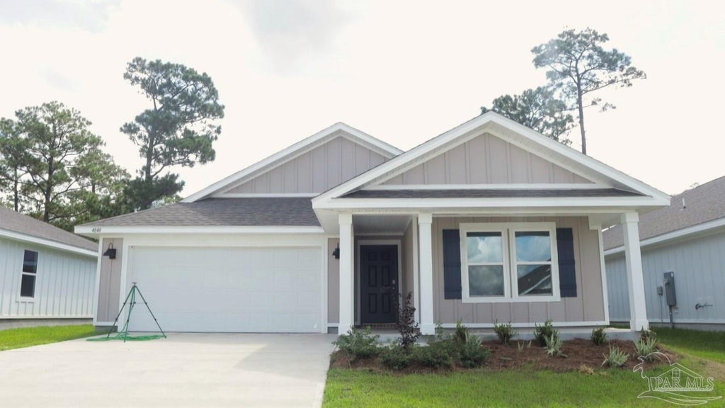 New completed construction! Welcome to Lakes of Woodbine! This stunning community in Pace offers the perfect place to call home. Step inside the Lakeside floor plan, which offers 5 beds, 3 baths, and a 2-car garage. The front of the house features guest bedrooms 4 and 5 with a guest bath in between. Towards the rear, you'll find an open concept kitchen, living, and dining area. The kitchen is equipped with an island, quartz countertops, a pantry, and stainless-steel appliances. Adjacent to the dining room, there is a hallway leading to guest bedrooms 2 and 3, along with another guest bath. Bedroom 1 is a secluded sanctuary by the living area, complete with a luxurious bath and a walk-in closet. This home also includes a Smart Home Technology package. This community offers resort-style amenities such as a pool, clubhouse, sidewalks, and a gym. The central location provides easy access to shopping, dining, NAS Whiting Field, UWF campus, and the beautiful Emerald Coast Beaches. Experience the ultimate Lakes of Woodbine lifestyle today!