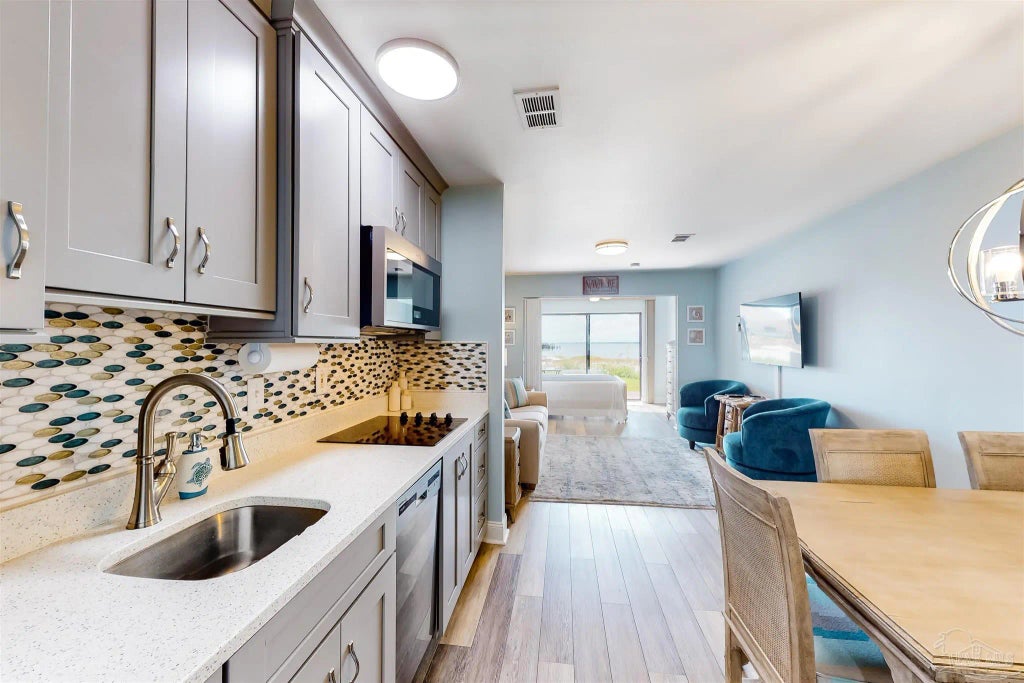 Welcome to your serene coastal retreat! Nestled in a picturesque development, this beautifully remodeled 1-bedroom condo offers the perfect blend of comfort and coastal charm. Step inside to discover a modern oasis, boasting an array of upgrades completed in 2021. The spacious living area welcomes you with abundant natural light streaming through sliding glass doors, framing breathtaking views of the tranquil sound. The open-concept layout seamlessly connects the living, dining, and kitchen areas, creating an inviting space for relaxation and entertainment. The kitchen, adorned with sleek countertops and stainless-steel appliances, invites culinary adventures, while the adjacent dining area sets the stage for intimate meals or lively gatherings. Retreat to the cozy bedroom, where tranquility reigns supreme. With ample space and a soothing ambiance from the view of the sound, it offers a peaceful haven for rest and rejuvenation after a day of coastal exploration. Outside, the allure of coastal living beckons. Step through the sliding glass doors onto your open patio, where gentle breezes and breathtaking sunsets await. Stroll through the meticulously manicured grounds to discover the community's fishing pier, offering the perfect spot for casting a line or simply soaking in the scenic vistas. For those seeking beachfront bliss, exclusive access to the private beach awaits just moments from your doorstep. Whether you're lounging in the sun, swimming in the surf, or simply savoring the salty sea air, this idyllic retreat promises endless opportunities for seaside relaxation. With the added benefit of allowing short-term rentals, this condo presents a prime opportunity for investment or vacation enjoyment. Whether you're seeking a peaceful coastal escape or a lucrative rental property, this remodeled condo offers the perfect blend of luxury, convenience, and coastal charm. Discover your slice of paradise today!