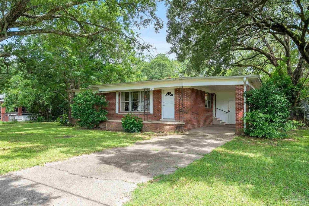 This beautiful brick mid-century ranch is being offered by the original owner. Nearly all of the authentic features are still present but with a newer roof, water heater , and HVAC for peace of mind. This 2 bedroom, one bath features a huge kitchen filled with original bult in cabinets and plenty of counter space. Original hardwoods and trim, including a built in cabinet in the dining area. Large laundry room and storage area off the sizable carport compliment the layout. Strikingly deep backyard with a 12'x28' outbuilding for plenty of storage options. Nut bearing pecan tree lends shade to the home and underground power adds to the value of this classic gem. Close to shopping, schools, and restaurants. Do not hesitate on this chance to own a piece of Pensacola history .