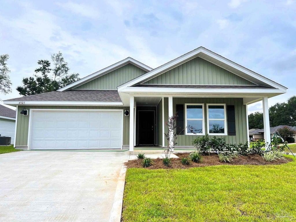 Discover the beauty of Woodlands! The exquisite Lakeside floor plan features 5 spacious bedrooms and 3 modern bathrooms, complemented by a convenient 2-car garage. Upon entering, you'll notice that guest bedrooms 4 and 5 are thoughtfully positioned at the front, separated by a stylish guest bath. Moving towards the rear, the home opens up to a seamless kitchen, living, and dining area. The kitchen is a chef's dream, complete with an island, stunning countertops, a generous pantry, and sleek stainless-steel appliances. Adjacent to the dining area, a hallway leads to guest bedrooms 2 and 3, along with a second guest bath. Bedroom 1 serves as a serene retreat, featuring a luxurious bathroom and an expansive walk-in closet. This home is also equipped with a cutting-edge Smart Home Technology package. With easy access to I-10, you can quickly reach Pace, Pensacola, and Crestview. Enjoy the convenience of being centrally located near shopping, dining, NAS Whiting Field, the UWF campus, and the stunning Emerald Coast Beaches.