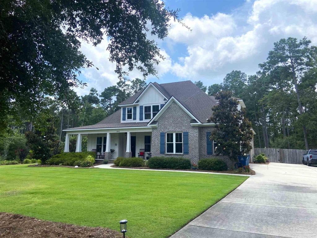 Take a look at this stunning, GOLD-Fortified 4BED/3BA home, showcasing many wonderful features such as double pane Low-E windows, all conveying appliances, large heated/cooled attic spaces, spectacular landscaping, oversized double garage w/ overhead storage unit, high ceilings, and many more impressive features! Upon entering the home, a beautiful foyer leads into the formal dining space. A large open concept beautifully joins the kitchen, dining, and living areas; the kitchen holds a new gas cooktop (Jan 2024), granite countertops, conveying kitchen appliances, plentiful cabinetry, large pantry, & gorgeous tile backsplash. The living space boasts tall, vaulted ceiling, brick fireplace, & separate access to front wrap-around porch. The primary suite is located next to the ample laundry room off the kitchen; enjoy a large jetted tub, separate tile shower, double vanity, water closet, and spacious walk-in closet. Another bedroom w/ walk-in closet and 2nd bathroom w/ tub/shower combo reside right by the staircase. Upstairs, enjoy a lot of heated/cooled, foam-insulated attic space for additional storage! Check out the other 2 bedrooms, bathroom w/ tub/shower combo, and bonus room w/ wet bar & mini fridge upstairs, as well. Finally, head outside and take in the incredible professional landscaping surrounding this gorgeous home. Enjoy the large screened back porch leading to brick terrace, and admire many outdoor features including butterfly garden, pollinator garden, fruit trees, and 5 raised beds for vegetable/herb gardening. Not to mention, the 680’ 6’ high fence for backyard privacy. Martyn Woods community offers access to tennis courts and fishing pier across CR6. Don't miss out on this truly outstanding property!! Buyer to verify all information during due diligence.