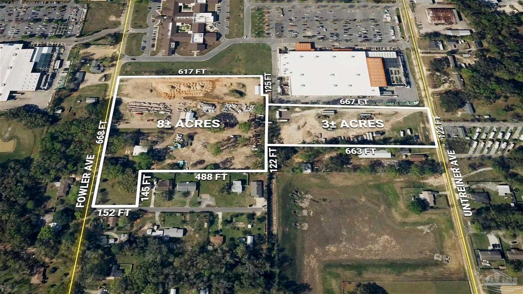 Discover the development potential of this expansive 11-acre property, featuring two entrances with road frontage. This unique assemblage offers split zoning, encompassing two highly sought-after zoning districts. - High-Density Mixed-Use Zoning: 8 acres suitable for up to 25 units per acre, perfect for residential or commercial projects. - Heavy Commercial/Light Industrial Zoning: 3 acres ideal for service-oriented businesses, multi-family housing, or lodging facilities. Conveniently located near major thoroughfares such as Highway 90, US 29, and with easy access to Interstate 10 and Interstate 110, this property provides excellent connectivity. This prime location is a significant advantage for both business and residential development, enhancing its appeal and potential. Additionally, included in the purchase are several leases: - 9110 Fowler: $2,500/month for a warehouse occupied by a landscaping business, plus a single-family residence available for lease. - 9200 Fowler: Single-family residence currently leased for $800/month. - 9210 Fowler: Vacant property with outdoor storage accessory buildings, currently leased for $2,900/month. This diverse income stream adds to the property's attractiveness and investment potential. Contact your Accredited Land Consultant today.