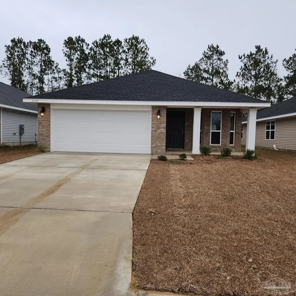 Move in Ready! Conveniently located off of Lillian Hwy and just 15 minutes from NAS Pensacola. You will be amazed with the 1717 floor plan, she features an impressive bay window that defines the covered front porch with wood columns. The bay window highlights the Dining room. The dining room opens into the spacious kitchen featuring granite counter-tops. There is a 10’ bar overlooking a generous Family room with a box ceiling which makes the room feel even larger. Enjoy visiting with family and friends while whipping up that favorite recipe! Your Master suite is across the back of the house with yet another boxed ceiling, a huge closet, and then the bath has a garden tub/shower combo and double vanities. The secondary bedrooms are enormous! Step outside onto the back porch with your morning coffee and listen to the birds sing in the roomy backyard! In Emerald Heights, you will find brick homes with architectural shingles, hurricane storm panels, double pane low E windows, the lots are cleared and sodded to 120’ from the front property line. Some other features included are: Granite in both bathrooms and Kitchen, quality bump and stagger upper cabinets with hidden hinges and crown molding, stainless GE appliances (stove, microwave, dishwasher), Moen faucets, knockdown ceilings and orange peel textured walls, 5 14" baseboards, rocker light switches, brushed nickel hardware and lighting package, LED lighting in kitchen and over tubs & showers, 50 gallon water heater, and much, much more! ** PICTURES ARE NOT A TRUE REPRESENTATION**