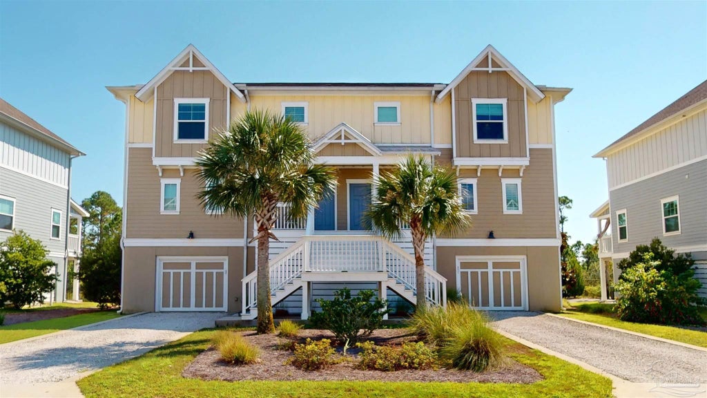 Welcome to this stunning unfurnished 4-bedroom, 4-bathroom resort villa townhome in the sought-after Lost Key Golf & Beach Club on Perdido Key. Immaculately maintained and offering 2,170 square feet of A/C living space, this 3-level home is perfect for entertaining. The main level boasts an open-concept living, dining, and kitchen area, along with a guest bedroom and full bath. The modern kitchen features white quartz countertops, soft-close white Merillat cabinets, and pull-out shelves. Enjoy serene preserve views from your covered patio. The main living areas and bathrooms are finished with wood-look porcelain tile, while upstairs you’ll find porcelain tile throughout. The spacious master suite offers a walk-in closet, en-suite bath with dual vanities, a large shower, and a separate water closet. Two additional guest bedrooms, each with their own en-suite bathrooms, and a laundry area complete the upstairs. This home offers ample storage, a 2-car garage, and an air-conditioned owner’s closet. Located in the premier Lost Key community, enjoy exclusive access to amenities such as a 24-hour gated entrance, Arnold Palmer-designed golf course, Beach Club, pool, fitness center, tennis courts, and a complimentary beach shuttle. Moments away from the Gulf of Mexico, pristine beaches, and nearby attractions like NAS Pensacola, Downtown Pensacola, Orange Beach, and Gulf Shores, this is resort living at its finest! Don't miss your chance to make this beachside oasis your own!