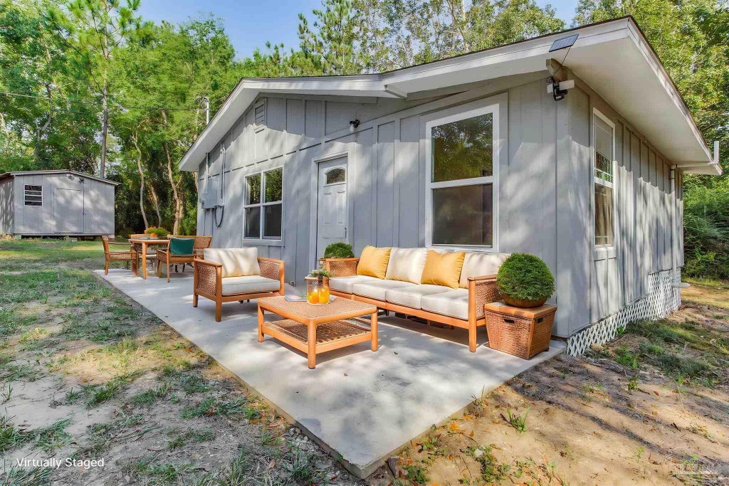 Located in the peaceful rural area of Bay Minette, this beautifully remodeled 4-bedroom, 2-bath home offers the perfect blend of modern comfort and serene country living. Recently updated with a brand-new roof, HVAC system, water heater, new windows, and upgraded plumbing and electrical systems, this home ensures long-lasting durability and efficiency. Sitting on nearly 2 wooded acres, it provides ample privacy, natural surroundings, and opportunities for outdoor activities like hunting. Plus, there’s a separate 12' x 14' shed, perfect for extra storage or a workshop.Step inside to a spacious and inviting entryway that doubles as a cozy seating area, leading you into the heart of the home. The kitchen is a showstopper, featuring sleek new floor-to-ceiling cabinets, elegant marble laminate countertops, a custom tile backsplash, and a full suite of brand-new stainless steel appliances, including a refrigerator, oven, dishwasher, and microwave. A window over the sink allows natural light to flood the space, making it both practical and stylish.Adjacent to the kitchen is a formal dining room that opens up to the living room, creating an ideal flow for entertaining. The home also boasts a separate laundry room for added convenience.Both bathrooms have been designed with a modern aesthetic, featuring high-end fixtures and a fresh, contemporary look. Each of the four bedrooms offers ample space, and the entire home has no carpet throughout, providing easy maintenance and a clean, modern feel.Outside, enjoy the peacefulness of your expansive wooded lot, perfect for outdoor activities like hunting, gardening, or simply soaking in the tranquility of country living.This home is move-in ready and offers everything you need for modern living in a quiet, rural setting within Bay Minette. Don’t miss this opportunity! Call your favorite Realtor today to schedule a showing!