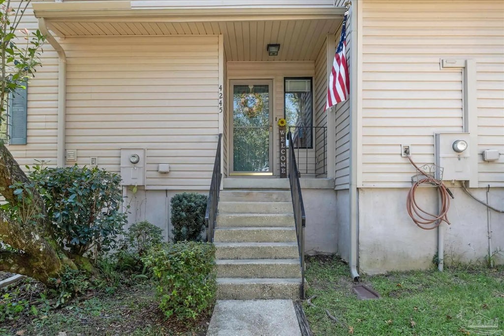 This affordable townhouse is close to everything and move in ready! The kitchen was remodeled approximately 2020/2021. The dining/living area is open and there are built in bookcases/shelving. The luxury vinyl flooring was installed last year. The recessed lighting keeps things looking clean and modern. There is a half bath and a large storage area under the staircase. Upstairs you have two spacious bedrooms and a bathroom with double vanities. The buyer of this great property will have peace of mind knowing the plumbing was replaced in (estimated) 2015. The HVAC was new in 2019, and a new roof was installed in 2020. There is a private deck off the back with a storage closet. The location of this town townhouse is in a dead-end cul-de-sac and it is high and dry and located right across from tennis courts and a beautiful pool. Close to shopping, malls, restaurants, Cordova Mall, Sacred Heart Hospital, Pensacola State College, Interstate, and Downtown. Call for your private tour today.