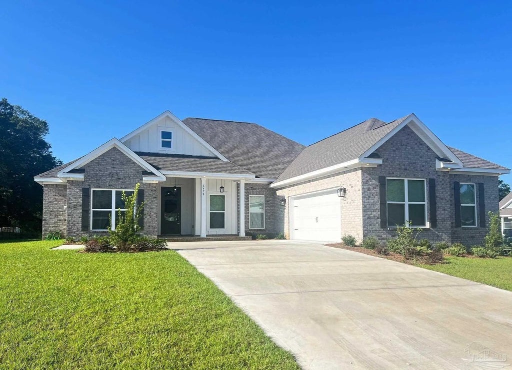 Welcome to Ledgestone, a hidden gem nestled in Beulah, yet conveniently close to the vibrant attractions of Pensacola. The Elm plan offers an impressive 2,686 square feet of beautifully designed living space, featuring four spacious bedrooms and three and a half elegantly designed bathrooms. The thoughtfully crafted layout ensures plenty of room for everyone. The kitchen is a dream, showcasing stylish cabinetry, stunning countertops, a large island, a gas range with a chic hood, a built-in microwave, and a generous walk-in pantry. From the delightful breakfast room, you can easily access the expansive covered patio and lush backyard. The primary bedroom serves as a tranquil retreat, complete with a luxurious ensuite bathroom that includes a soaking tub, a tastefully tiled zero-entry shower, and dual closets with custom wood shelving. Additionally, three well-sized guest bedrooms come with walk-in closets for added convenience.