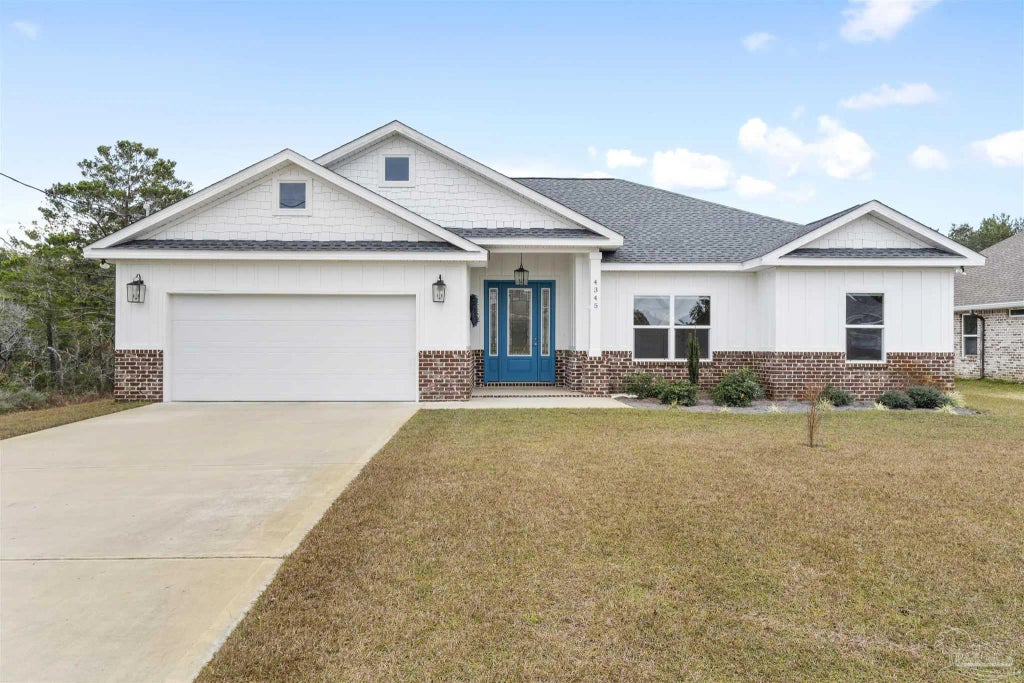 This beautifully maintained 2022-built home combines modern design with comfort and functionality. Offering 4 bedrooms and 2 full bathrooms, this home has everything you need to accommodate your lifestyle. As you step inside, you'll be greeted by elegant bay windows and an abundance of natural light throughout. The spacious kitchen is a chef's dream, featuring stainless steel appliances, a large island, and an adjacent breakfast area perfect for casual dining. With ample counter space and storage, meal prep and entertaining are seamless in this open-concept home. The luxurious primary suite is a true retreat, complete with recessed lighting, a generous closet, and a spa-like bathroom boasting a floor to ceiling tiled shower and double vanity. The three additional bedrooms are spacious, with plenty of closet space, offering everyone their own private retreat. Outside, the beautifully landscaped and sodded lot features a covered patio that’s perfect for relaxing or entertaining outdoors. Large lot offers plenty of room to add a pool. The attached 2-car garage has fresh epoxy coated flooring and provides convenient parking and extra storage. This home has additional insulation in interior/exterior walls as well as the ceilings, for maximized energy efficiency. Located just minutes from top-rated schools, pristine beaches, Tiger Point Park, the Garcon Point Bridge, shopping centers, and grocery stores, this home is perfectly situated for both convenience and recreation.