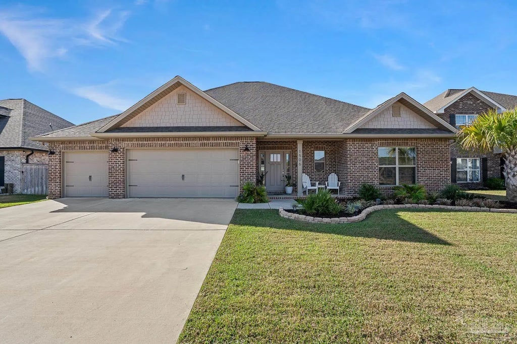 One-level homes in Nature’s Cove rarely come on the market! This beautiful, all-brick Craftsman-style home is located off of prestigious and quiet Soundside Drive, offering convenience to the interstate and the stunning sugar-white beaches. Step inside this spacious split-bedroom, open floor plan home, where exquisite details and character shine throughout. The foyer leads to an elegant living space featuring crown molding, wood-look tile flooring, and high ceilings with recessed lighting. A cozy gas fireplace adds warmth and charm. The chef’s kitchen is a dream, boasting granite countertops, upgraded staggered cabinetry, stainless steel appliances, and plenty of counter space for meal prep and entertaining. Retreat to the private master suite, designed with tray ceilings, crown molding, and a luxurious ensuite bath featuring a granite double vanity, frameless tile shower, drop-in soaking tub with tile surround and a huge walk-in closet. The covered back patio offers ample space for entertaining, relaxing, or even adding a pool. The expansive backyard provides a serene and private retreat, perfect for enjoying peace and tranquility. A three-car garage ensures abundant storage for vehicles, tools, and beach gear. Recent upgrades includes lawn irrigation system, privacy fence, gutters, ceiling fans in all the bedrooms and an attic access ladder with a partial attic floor for additional storage. Perfectly located between Pensacola Beach and Navarre Beach, this home is just 30 minutes from Pensacola Airport and downtown Pensacola, home of the Blue Wahoos Stadium. Nearby, enjoy a boat ramp, public beach access, parks, scenic trails, shopping, and restaurants. Don’t miss this rare opportunity to own a stunning home in one of the area’s most sought-after locations. Schedule your showing today!
