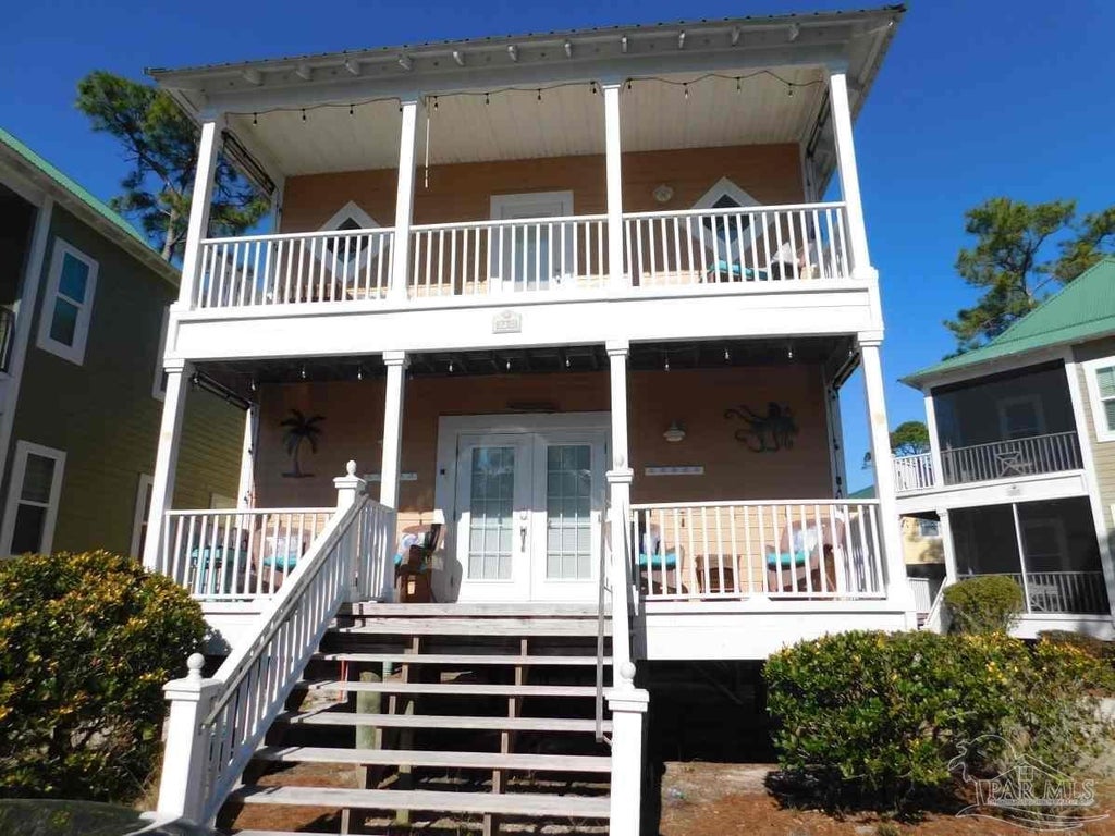 This lovely coastal cottage is the perfect beach get-a-way to enjoy with family and friends! Plus you can enjoy the added bonus of earning rental income when you aren't using it. Located on the popular vacation paradise destination of Perdido Key, with it's gorgeous gulf beaches and quaint shopping area just around the corner, this 2 bedroom, 2 1/2 bathroom unit is ready to go! It comes fully furnished and complete with everything you need to lay back, relax and breathe in that salt air. You, and your guests, will love the welcoming, covered front deck, perfect for enjoying a morning cup of coffee. Inside the large open floor plan with beautiful "coastal oak" wood look flooring, has a casual yet modern style. Tasteful furnishings enhance the comfortable interior with colorful artwork sprinkled throughout. The ample, upgraded kitchen features granite countertops, stainless steel appliances, white subway tile backsplash and breakfast bar with stools. The good sized dining area comfortably seats 6 guests. Upstairs are two bedrooms, with their own full bath. The primary bedroom features a king size bed, flat screen TV, full bath with granite countertop vanity, upgraded coastal light fixture and large shower/tub combo, plus it's own private balcony to sit and enjoy a glass of wine in the evening breeze. The guest bedroom has two queen-sized beds, it's own full bathroom with granite vanity and shower/tub combo. This wonderful unit has all new doors & windows, new hot water heater (2023) & roof (2021). The exterior has been power washed, the railings and posts freshly painted, and the security cameras were just replaced last year. The unit is currently on EVOLVE rental platform for a low 10% fee, and has rental history plus current and future rental reservations with returning guests if you choose to utilize earning extra income. And it is baby ready with gate, highchair & pack-n-play! The Purple Parrot Resort community is just minutes from the white sand beaches of the G