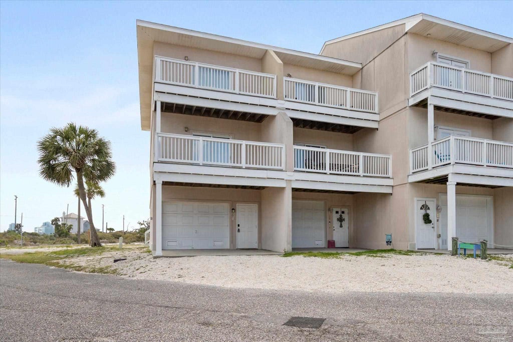 Don't miss out on this newly renovated and immaculate town home located on Perdido Key. The townhouse was completely rebuilt in 2008 and offers four balconies with views of the Gulf of Mexico and Old River. Built on a higher elevation, which lowers the possibility of flooding in the event of a storm. Also, constructed with PIP concrete walls and floors for superior strength and making it more storm resistant, ensuring that this home is solid and up to date with the current Hurricane standards, and is the only building constructed with PIP concrete at Dockside Villas. Take the elevator from the bonus living space on the first floor to the main living area. An open kitchen concept with granite counter tops, tiled floors, that open up to the spacious living / dining area. There is a half bath off the kitchen. The primary bedroom and second bedroom are on the second floor. Each bedroom has a private bathroom, shower plus soaker tub in primary bathroom and shower/bath combo in second bathroom. The concrete walls and being an end unit help minimize outside noise. Complementing each room is a private balcony. Home comes with all major appliances including washer and dryer. Unfurnished. New roof, May of 2025. New dock is first come first serve, built with flow through decking to minimize damage from storm tides. HOA dues only $1,200 per year. Your piece of Paradise awaits! Buyer to verify all information during due diligence.