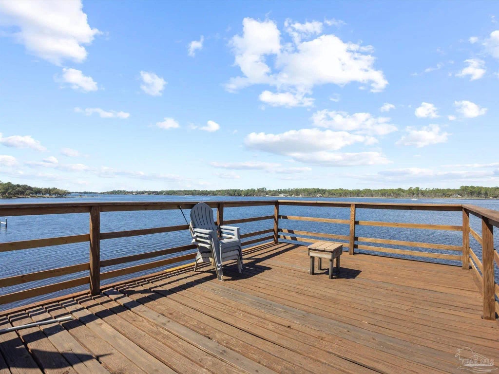 Waterfront on East Bay! This all brick home on one level is on a 2.5 acre lot with 100ft on the water. There is a boardwalk and dock on the water - bring your boat, jet-ski, or kayaks! Adjacent property to the east is also available for $175K which would give you 180' of waterfront and over 4 acres! Screen porch and 24' deck with composite treads on the water side for enjoying the outdoors and view of the bay. Home has never flooded & there's no HOA! Cul-de-sac street so no thru traffic. Brand new roof, new windows, and hurricane shutters! Excellent schools! It is a split bedroom floorplan with wood and tile floors in much of the home. Updated kitchen with granite counters, tiled backsplash, & newer appliances. Living room has crown molding, built-in shelves, and beautiful fireplace. 2 bathrooms in master bedroom suite and master has doors leading out to a side deck. 2 sheds in back yard. Observation deck on dock on the bay. Call today for a showing!