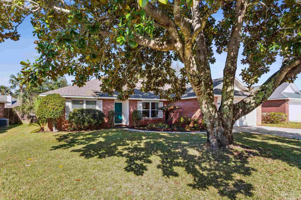Nestled in the waterfront community of Sandy Beach Estates, this 3-bedroom, 2-bathroom brick home offers the perfect coastal escape! Step inside to find a spacious, open floor plan with soaring ceilings and tons of natural light. The private primary suite, tucked away on one side of the home, boasts an ensuite bath with a dual vanity, separate shower, and a generous walk-in closet — the perfect spot to unwind after a day at the beach. The heart of the home is the airy living room and formal dining room, with a kitchen that's ready for casual meals or entertaining. You'll love the granite countertops, large island, and pantry, plus a cozy eat-in area to enjoy a cup of coffee while soaking in the views. The home is move-in ready with recent updates including a 2024 HVAC system, 2020 roof, and a 2015 water heater. Plus, the washer, dryer, refrigerator, and oven all convey with the sale — just pack your bags and start living the dream! Step outside into your private backyard oasis, where a tall fence provides added privacy and a large, covered patio with stamped concrete invites you to relax. Enjoy fresh oranges from your own tree, or admire the colorful blossoms of the surrounding trees — all while the sounds of the sea breeze surround you! For just $250/year, you get year-round access to the Sound (Intracoastal Waterway) with a beautifully updated waterfront area featuring a gazebo, picnic table, beach, and a newly rebuilt pier with benches for you to soak in stunning waterfront views anytime. Come experience the coastal lifestyle, all while being safely situated in Flood Zone X500 — schedule your showing today!