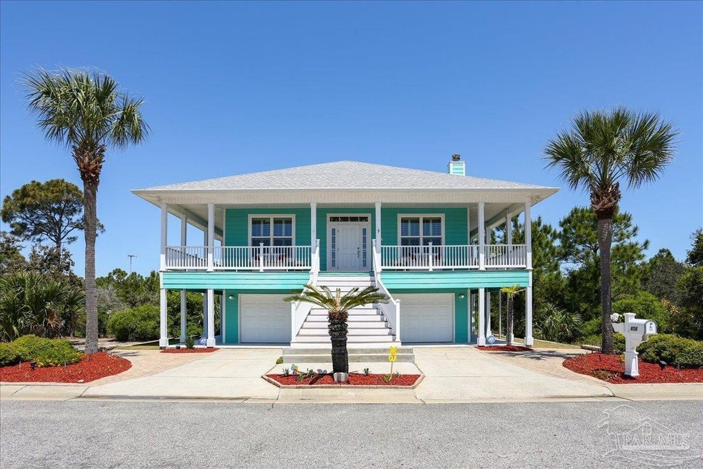 Welcome to a piece of paradise on Perdido Key! Imagine Living on an island with white sandy beaches but close to shopping and restaurants! COMMUNITY POOL! This 5 bedroom, 3 and a half bath home is waiting for you to move in! This property has had only one owner that has continuously maintained and beautified the home with upgrades throughout the years. The large front porch is such an inviting space for morning coffee or evening cocktails! As you walk through the front door you will be greeted by the warm open floor plan that includes the living area with a wood burning fireplace, amazing kitchen with a custom-built wine rack and the dining room directly ahead! The kitchen invites you to enjoy the large granite countertop island, an abundance of cabinets plus a pantry, double oven and all stainless steel appliances. Adjoining the kitchen is the dining room and door to the outside balcony and the lift. To the left of the kitchen is the large primary suite that includes a large bedroom, high ceilings, a door leading to the balcony, a his and hers walk in closets and an updated bathroom with a beautiful free-standing tub and faucet, a tile shower and his and her vanities. Down the hall you find the laundry room with more than ample space and continuing on is a bedroom to the right that leads to a Jack n’ Jill bathroom and to the bedroom on the left. To the right of the kitchen, you find another full bathroom and guest room. Down the stairs is a huge multi car garage with a unique private heated and cooled game room/man cave/5th bedroom and a half bathroom! The back of the house has a large screened porch great for bird watching and a low maintenance back yard which is perfect for gatherings and enjoying our fantastic Florida weather!! This idyllic location is walking distance to the Gulf of America and the Gulf Island National Seashore. This house is a must see to appreciate all of its features and amenities.