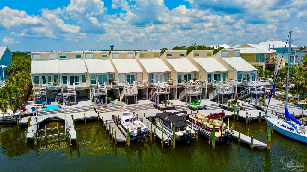 Welcome to Life at the Beach—with Your Own Boat Slip! Waterfront townhomes like this are rarely available in Perdido Key Coves, and this one is a true gem! Fully updated, this home features new flooring, appliances, countertops, windows, doors, HVAC, water heater, and even an EV outlet in the covered carport for your electric vehicle. Your assigned boat slip accommodates up to a 31-foot boat, and you have the option to install a boat lift. Step out into the open lagoon area of Old River, a perfect setting for paddle boarding, kayaking, or fishing for speckled trout, redfish, and flounder—or drop a crab trap off the dock and host your own sunset crab boil! You'll enjoy the secure oversized storage room on dock level to store all of your water toys, fishing equipment, bikes, paddle boards and kayaks! Across from your parking area, you'll find pickle ball and tennis courts, and just steps across the street is your deeded access to the emerald waters and sugar-white sands of the Gulf of Mexico. This friendly waterfront community is nestled in the heart of the Florida State Park in Perdido Key and BOATERS and FISHERMEN (and women!) will love the property location - only 4.9 miles to Perdido Pass!!! The New multi-use bike paths wind throughout the Key, making it easy to explore local restaurants, world-class entertainment, boutique shopping, and scenic parks—all without getting in the car! Don't miss your opportunity to own this move-in ready slice of paradise in one of Perdido Key's most sought-after waterfront communities! **Unit is sold unfurnished, photos are Virtually Staged with furnishings** MARINA COVE REQUIRES A 30 DAY RENT RESTRICTION