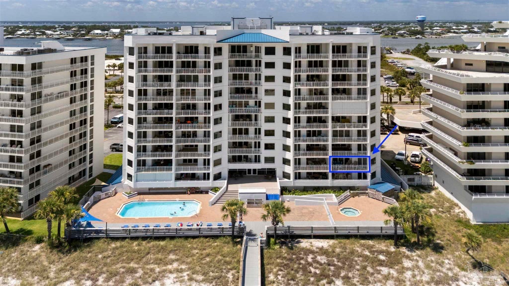 Guaranteed to make dreams come true! This spectacular Gulf end-unit at prestigious Seaspray Condominium is everything you could hope for and more. The open floor plan includes 3-bedrooms, 3-baths and a living area large enough to insure comfort for all. The well-appointed kitchen with full size washer and dryer looks out to the living and dining areas and onto the balcony overlooking the beach. The primary suite is complete with a fancy shower, huge closet and balcony access to relish the morning light. Among the many amenities you’ll enjoy an outdoor pool and spa, a fitness room, a community room, covered garage parking for owners, and extra-large owner storage. On the river side is a first come first serve marina, lighted tennis and pickleball courts, boat storage, boat ramp, boat docks and an RV lot available for use. There is great dining and shopping everywhere. It’s 10 minutes to Orange Beach, 30 minutes to downtown Pensacola and close to Perdido Key Gulf Islands National Seashore.