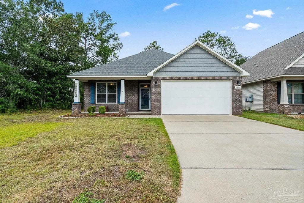Gorgeous move in ready beautifully maintained home with No HOA on a corner lot! From the moment you arrive, you’ll be welcomed by the Craftsman style front porch columns and a charming covered entry, all nestled beside a wooded area that provides added privacy and tranquility. Step inside to a thoughtfully designed split floor plan. Two spacious guest bedrooms and a full bath are located at the front of the home, completely separate from the private primary suite in the rear. Continue down the hallway to a bright, open-concept family room featuring a tray ceiling and abundant natural light. The gourmet kitchen is a true showstopper, with granite countertops, an oversized island, beautiful cabinetry, and soft-close drawers. A large formal dining area completes this inviting space making it perfect for entertaining or family gatherings. The primary suite is a true retreat with high ceilings, dual closets—including a bonus closet in the bedroom—and a spa-like ensuite bathroom. You’ll find double vanities, a soaking tub, a large walk-in shower with newly added glass doors, a private water closet, and space for a makeup or dressing area. Additional highlights include a spacious laundry room with shelving and room for built-ins, a folding station, or mudroom-style bench. The backyard is an entertainer’s dream—one of the largest lots in the neighborhood! Enjoy the covered patio (easily screened in), an extended privacy-fenced yard, and a beautiful paver patio with firepit tucked at the rear of the property—perfect for gatherings under the stars. Located just minutes from NAS Pensacola, 20 minutes to Downtown Pensacola, 20 minutes to Perdido Key, and about 25 minutes to Pensacola Beach, this home offers easy access to everything coastal living has to offer. Don’t miss this incredible opportunity—schedule your private showing today! Assumable 2.875% interest rate!