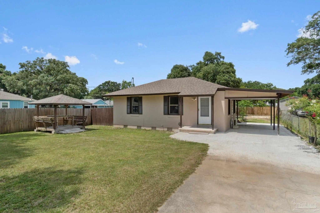 Discover this beautifully remodeled single-family home in Pensacola, perfectly located just minutes from the Navy base and the sparkling Gulf beaches. This charming 2-bedroom, 1-bathroom home offers 704 square feet of thoughtfully updated living space. From the moment you arrive, you’ll notice the inviting curb appeal, highlighted by a picturesque gazebo in the front yard, perfect for morning coffee or relaxing evenings. Step inside to find brand-new luxury vinyl plank flooring throughout, giving the home a fresh, modern feel. The bathroom has been completely remodeled with contemporary fixtures and finishes, creating a spa-like retreat. Major updates bring peace of mind, including a new roof in 2022, a new hot water heater installed in 2025, and a new mini-split AC and heat system also added in 2025. An added bonus is that the entire crawl space has been encapsulated and equipped with a dehumidifier, ensuring a solid and well-maintained foundation for years to come. The fully fenced property offers a private and secure outdoor space for pets, gardening, or entertaining. Whether you’re looking for a starter home, downsizing, or seeking a great investment property close to Pensacola’s best attractions, this home is move-in ready and waiting for you. Enjoy the perfect combination of style, comfort, and convenience in this thoughtfully updated property just a short drive from shopping, dining, and the white sandy beaches of the Gulf Coast.