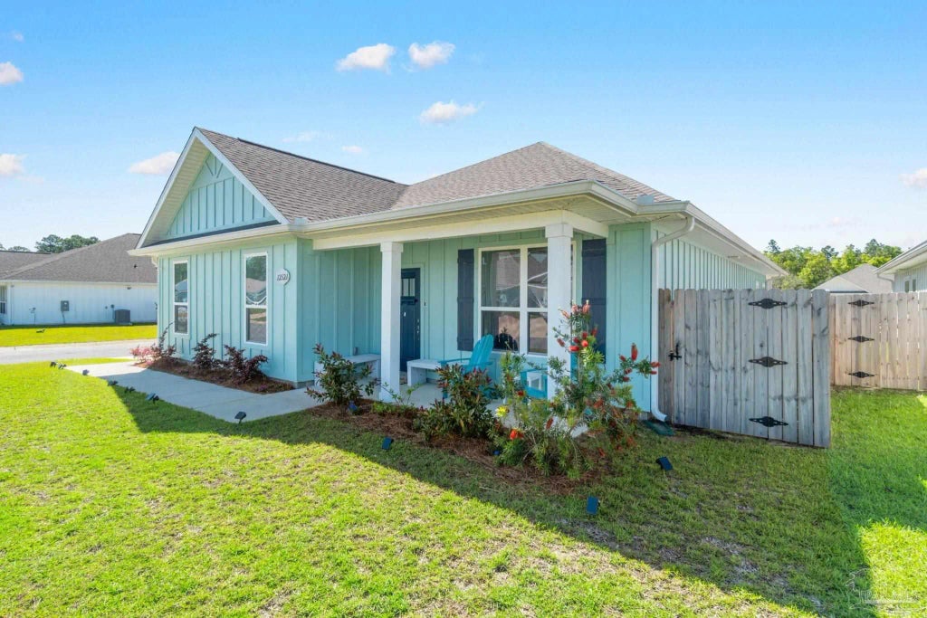 Welcome to the coastal lifestyle of this community with comfortable proximity to the sugar white sands of Perdido Key, NAS, Blue Angel Recreational Park (for military personnel) and SW Escambia Sports Complex. There is a new Publix nearby and Wawa and Whataburger coming soon. We also have a new nearby Perdido Boat Launch! This floorplan is a favorite as it has 4 bedrooms and 3 baths, which makes it perfect setup to work from home or hosting guests. The second bedroom has its own private bath and oversized closet (perfect for guest). The third and fourth bedrooms have their own hallway and share the third bath. This open floorplan has 9' ceilings and 6" baseboards throughout and tray ceilings finished in crown molding in the living area and primary bedroom for that extra elegance. Luxury vinyl plank flooring in all areas except the carpeted bedrooms. Enjoy entertaining in this well planned kitchen with granite countertops, shaker style cabinets, pantry, stainless steel appliances and an eat at bar. The main bath has a garden tub for relaxing evenings, separate shower, double vanity, water closet and large oversized closet. Enjoy your morning cup of coffee on your back porch in this quiet community. This premium sized corner lot with a generous backyard has plenty of space for a future pool or just room for the kids and dogs to run! For extra curb appeal you have a side entry 2 car garage, gutters, board and batten style hardie board exterior, and 4 gates in the fully fenced in yard. Be sure and check out the matterport virtual tour. Call today to schedule an appointment, you will fall in love with this home!