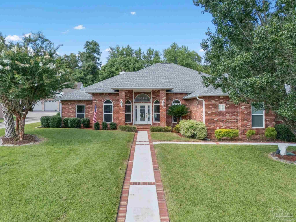 Nestled amidst lush, mature landscaping, this three bed, two bath, all-brick executive home offers a perfect blend of comfort and functionality. As you step inside, you are greeted by an abundance of natural light pouring through oversized windows, french doors, and multiple skylights set into the dramatic cathedral ceilings. The entire home features neutral-colored, low-maintenance tile flooring. The expansive living room is anchored by a beautiful fireplace. Adjacent, a formal dining space awaits your next dinner party, while the dedicated home office provides a productive retreat. The kitchen offers extensive countertops, abundant cabinetry, and an oversized pantry, an ideal space for cooking weeknight meals or prepping for holiday gatherings. A large utility and laundry room adds to the home's practicality. This split floorplan was designed for maximal privacy. The primary bedroom features elegant tray ceilings, large windows overlooking the pool, and a private entrance. The ensuite primary bath is complete with a double vanity, a jetted soaking tub, a separate walk-in shower, and a private water closet. The oversized guest rooms are equally impressive, featuring high ceilings and built-in storage. A well-appointed Jack and Jill bathroom connects the rooms, offering both convenience, space, and style. The outdoor space is a showstopper. Your private backyard oasis features a sparkling, heated inground pool and spa, anchored by a spacious covered lanai. The perfect space for relaxing and entertaining year-round. For the hobbyist or traveler, this property is a dream come true. In addition to an attached oversized two-car garage, a 46' x 18' detached garage with 16-foot ceilings provides secure, covered storage for a Class A motorhome, boat, or car collection. Peace of mind is included with major recent updates: Roof (2023), HVAC (2021), and Water Heater (2025). This is more than a house—it's the lifestyle you've been searching for. Schedule your tour today!