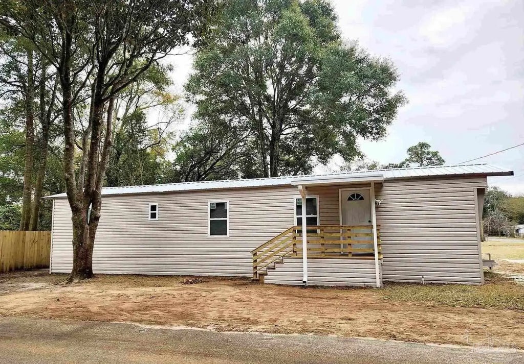 This beautifully renovated single-wide mobile home offers comfort, style, and convenience. Recent upgrades include a new metal roof, vinyl siding, HVAC system, double-pane windows, modern appliances, and wood-look flooring throughout. The kitchen, bathroom, and fixtures have all been tastefully updated, creating a fresh and inviting interior. Enjoy outdoor living with covered porches at both the front and back entrances, complete with custom wood steps and railings. Located in the heart of Pensacola, this home provides easy access to shopping, dining, I-10 and I-110, and is just a short drive to downtown Pensacola and the white sands of Pensacola Beach. This charming property is affordable, move-in ready, and waiting for its new owner.