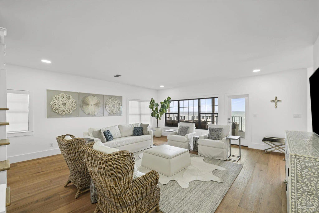 Experience refined coastal living where luxury upgrades meet resort-style amenities in a gated waterfront community. Inside, the kitchen shines with new wood flooring, custom-painted shaker-style cabinetry, dual paneled refrigerators, luxury appliances, and striking White Rhino quartzite counters, complemented by a new faucet and designer lighting. Ten-inch oak wood floors flow throughout, while all three bathrooms showcase Calacatta gold marble mosaic floors, white subway wall tile, quartzite counters, custom cabinetry, new plumbing fixtures, and sleek glass shower doors. The fourth bedroom is enhanced with custom wood shaker cabinetry, built-in dressers, and a thoughtfully designed closet. A private elevator provides seamless access to all three levels, ensuring convenience and accessibility. Beyond the interiors, the property includes a deeded boat slip featuring a new 10,000 lb lift. The community is part of a **$5 million exterior improvement project** scheduled for completion in February 2026, including fresh white paint, a brand-new 1,500-foot waterfront boardwalk, upgraded water and sewer systems, and a resurfaced parking lot. Residents enjoy exclusive access to a waterfront pool, tennis court, and private beach. This home offers the perfect blend of modern elegance, community investment, and Gulf Breeze’s coveted coastal lifestyle.